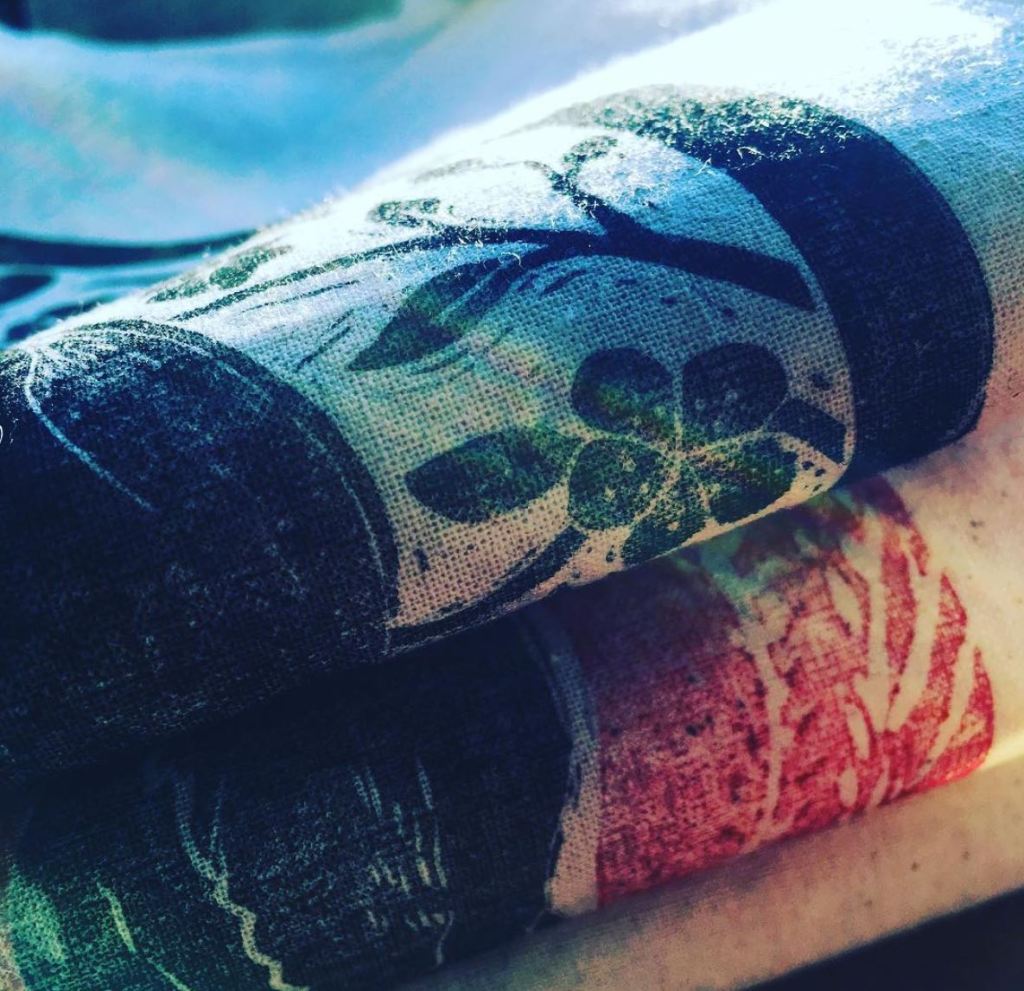 Artist Chloe Birnie works in a range of mediums from the traditional pens pencils and paints to computer design using programs such as Adobe Illustrator and Photoshop. Chloe designs and prints textiles with silk screens and block prints, working in surface pattern design, clothing and the textiles industry. Chloe’s previous work includes designing t shirt graphics, sportswear and costumes for the theatre .